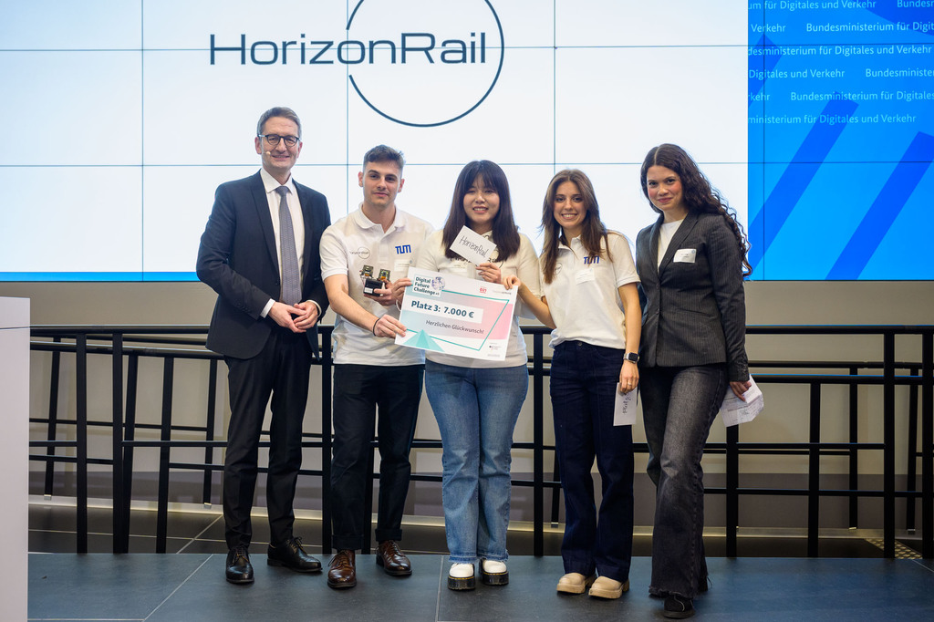 Beim Finale der Digital Future Challenge im BMDV erreichten wir den 3. Platz! Nach Umfrage, Prototyp und Testlauf im ICE-Werk München präsentierten wir unser Multi-Sensor-System für mehr Sicherheit im Bahnverkehr. Dank wertvollem Experten-Feedback von Fujitsu, Hexagon und der Deutschen Bahn konnten wir unser Konzept weiterentwickeln. Nun bereiten wir die nächsten Schritte vor – mehr dazu bald!